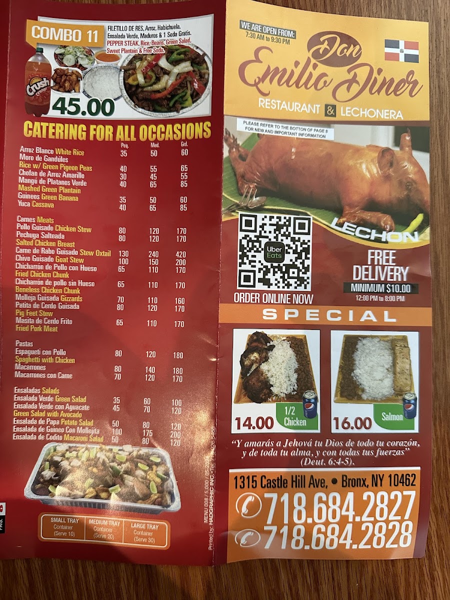 If you're in the Bronx and craving a delicious meal, look no further than Don Emilio Diner Menu. Located at 1315 Castle Hill Ave, this cozy spot offers an array of mouthwatering dishes that make it a go-to for locals and visitors alike. Whether you're in the mood for classic diner fare like juicy burgers and crispy fries, or something more hearty like a homemade meatloaf or breakfast all day, Don Emilio's has it all. Each dish is prepared with care, ensuring fresh ingredients and satisfying flavors with every bite.
